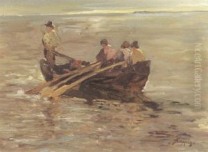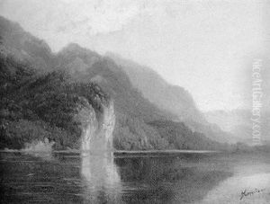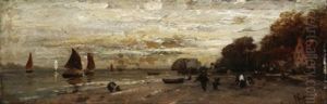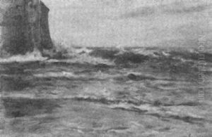 Kustenlandschaft Mit Einem Wehrturm Bei Aufgewuhlter See