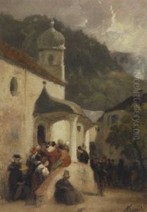 Sommerliche Alpenlandschaft Mit See Und Kirchdorf
