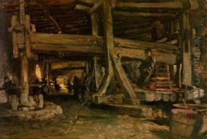 Blick In Eine Kelter Mit Umgeworfenen Weinbottichen