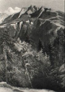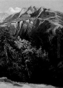 Blick Uber Einen Hochwald Auf Eine Gebirgskette