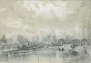 Figures With A Donkey In A Village Street