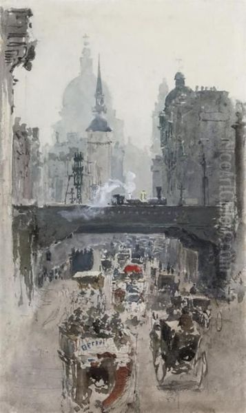 A Steam Engine Passing Over Ludgate Hill, St Paul's Beyond