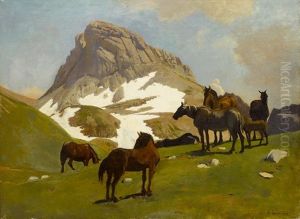 Pferde Vor Einer Gebirgslandschaft