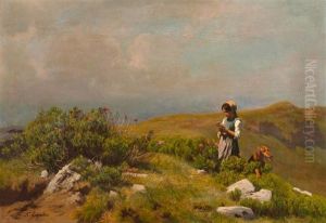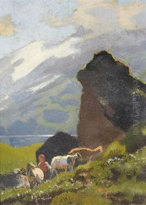Rastende Hirten Mit Vieh Im Gebirge