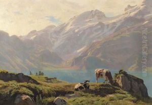 Landschaft Mit Kuhen Bei Greyerz