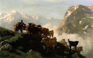 Berglandschaft Mit Kuhen Und Senn