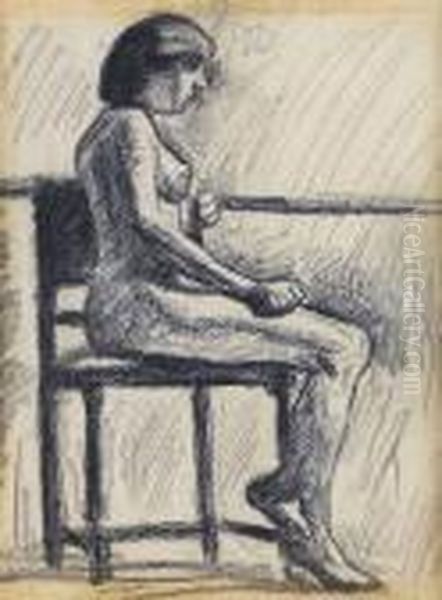 Nu, Assis, Dans Un Interieur