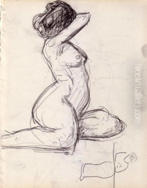 Nu Au Chignon Assis De Profil