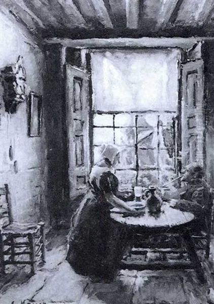 Hollandisches Fischerpaar Bei Der Mahlzeit In Einer Stube Mit Grossem Fenster