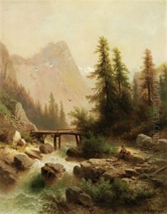 Gesbirgslandschaft Mit Wassermuhle
