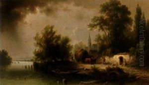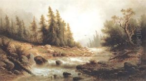 Landskap Med Kyrka Och Brusande Fors