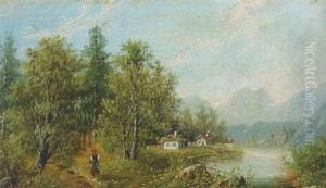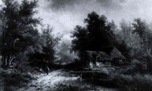 Waldlandschaft Mit Strohgedeckten Katen Und Personen