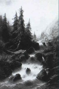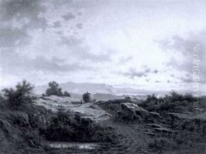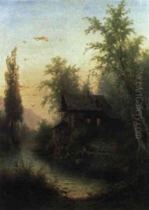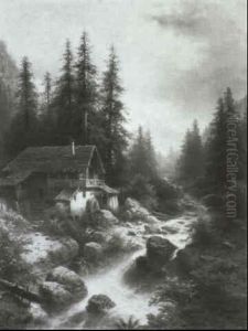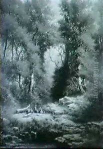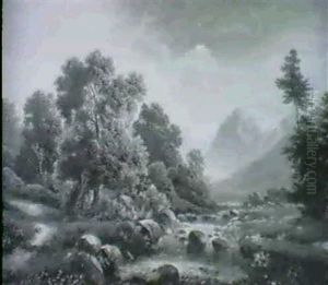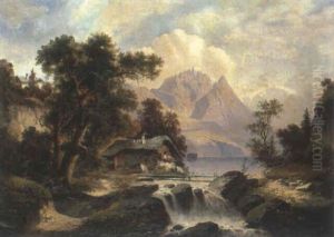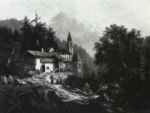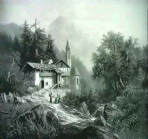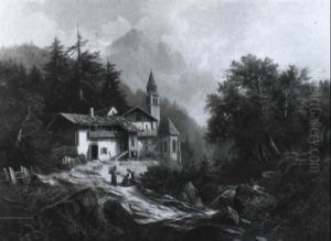 Alpine Landscape With Faggot Gatherers Resting, A Chalet And Church Beyond