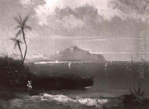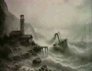 Sturmische Marine Mit Raddampfer, Segelschiffen, Aufragendem Fels Und Ruine