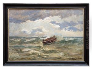 Wenk's art was characterized by a meticulous approach to capturing the natural beauty of his subjects, often working en plein air to closely observe the changing light and weather conditions that he sought to convey in his paintings. His works often feature dramatic skies and the interplay of light on water and land, a testament to his skill in portraying the mood of a scene.