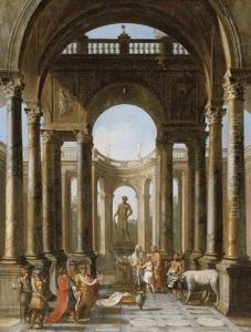 Architectual Capriccio With Worshippers Before Statue Of Mars