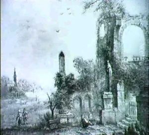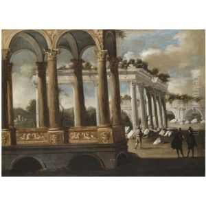 Figures Beside Classical Ruins