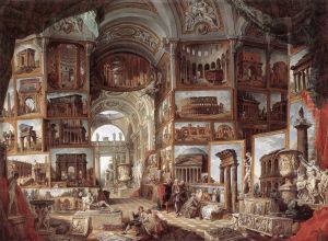 Personnages Dans Des Ruines Pres D'un Bas-relief; Personnages Au Pied D'une Statue