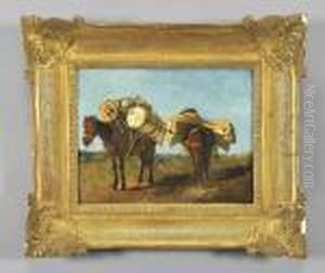 Due Cavalli Carichi Di Masserizie In Campagna