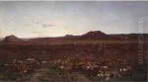 Falcon Hunting In The Desert. Oil/panel, Signed