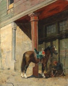 A Resting Guard With His Horse