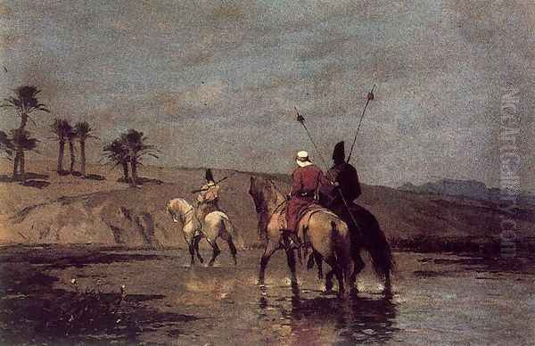 Bring the timeless beauty of Alberto Pasini's Arabic riders crossing a river into your home with a handmade oil painting reproduction. Carefully recreated on canvas by skilled artists using traditional techniques, this piece captures the delicate brushwork, subtle light, and vibrant color of the original masterpiece. With museum-level quality and rich texture, it brings elegance and artistic depth to any space. Enjoy free shipping and make this masterpiece a part of your personal collection.