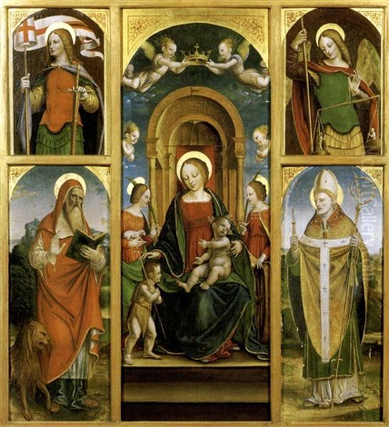 Polittico: Madonna Con Bambino, San Giovannino, Sant'agnese E Santa Caterina D'alessandria; A Sinistra: San Girolamo E San Giorgio (?); A Destra: Sant'ambrogio Ed L'arcangelo Michele (sides, Smaller)