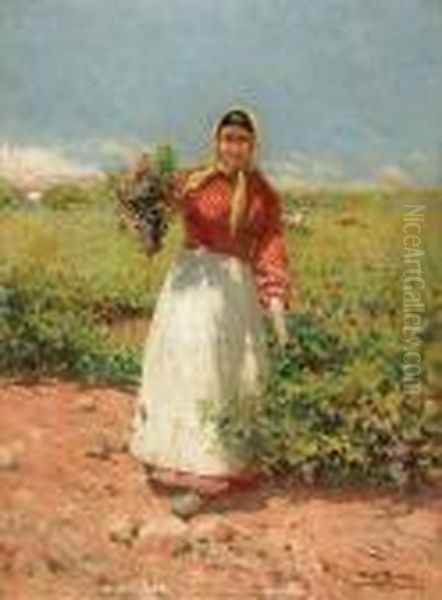 Vendimiadora. Oleo Sobre Lienzo Adherido A Car