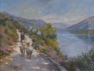 Pastorella Con Pecore Lungo Il Lago