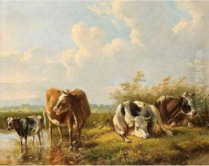 Cattle Resting At The Water's Edge; Also A Companion Painting Of The Same Subject (a Pair)