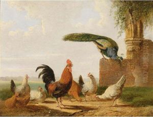 Poultry And A Peacock By A Ruin