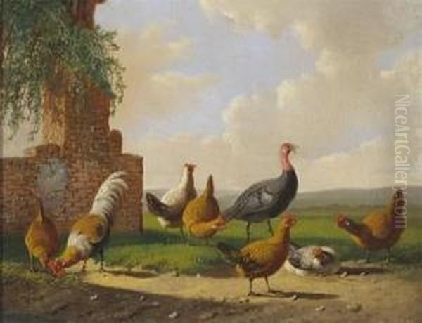 Chickens And A Turkey By A Ruin