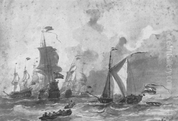 Hollandische Kriegsschiffe Auf Aufgewuhlter See