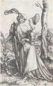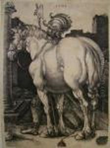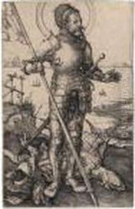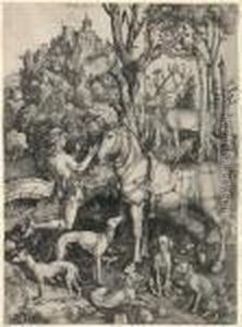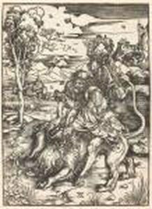 The Madonna And Child Sat Before A River With A Monkey At Her Feet.