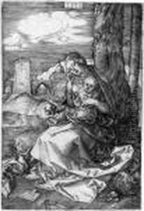 Durer St. Paul Visits St.paul In The Wilderness Woodcut 21.2cm X 14cm