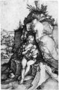 The Madonna And Child Sat Before A River With A Monkey At Herfeet.