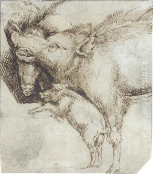 Study Of Two Swine And A Piglet