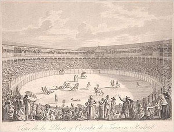 Vista De La Plaza Y Corrida De Torosen Madrid