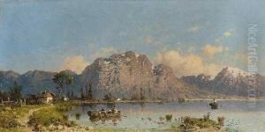 Para Wedrowcow Z Przewodnikiem W Alpach(pejzaz Z Gor Krolewskich W Tyrolu), Ok. 1875-80