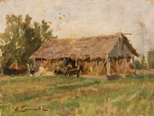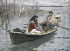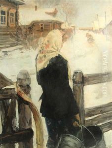 Zwei Sibirische Tiger An Einer Wasserstelle In Winterlicher Landschaft