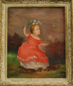 Portrait Of A Little Girl With Lilies And Butterfly