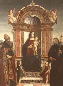 The Madonna And Child Appearing To Saints Nicholas Of Tolentino And Thomas Aquinas