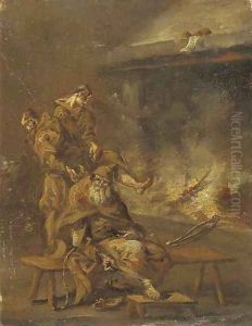 A Workroom Interior With Nuns Engaged In Wickerwork