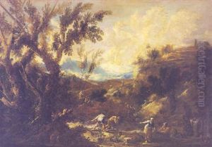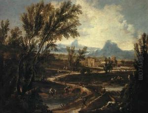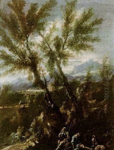 A Mountainous River Landscape With A Capuchin Friar And Travelling Attendants