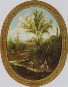 A Capriccio Landscape With Ruins By A Lake And Figures In The Foreground