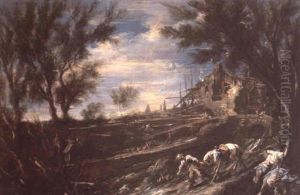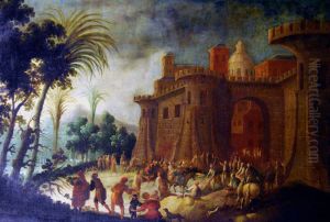 Paesaggio Con Figure E Borgo Arroccato