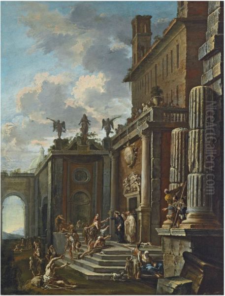 A Saint Giving Alms At A Church Door
