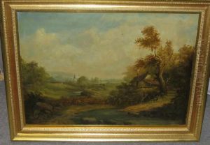 Viandanti In Sosta Presso Un Fiume, In Lontananza Un Borgo Conpiramide