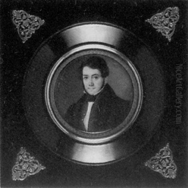 A Gentleman, In Brown Coat, Green Waistcoat, White Shirt And Black Stock Oil Painting by Alessandro Martelli