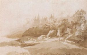 Weite Bewaldete Landschaft Mit Einem Kastell, Figuren Und Blick Auf Das Meer, Paesaggio Con Castello, Figure E Vista Sul Mare